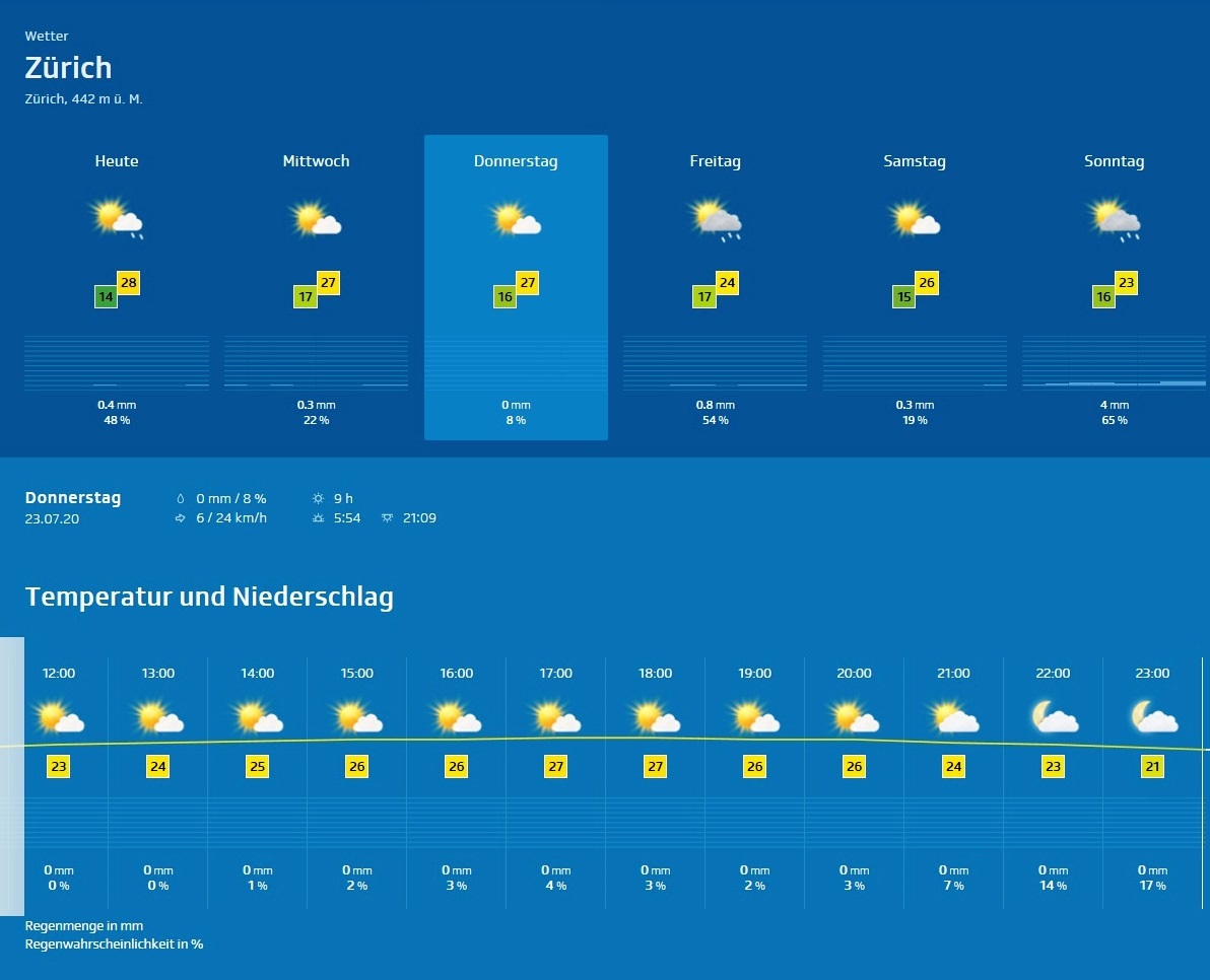 Züri-Wätter im Detail für Donnerstag, 23.Juli 2020 |