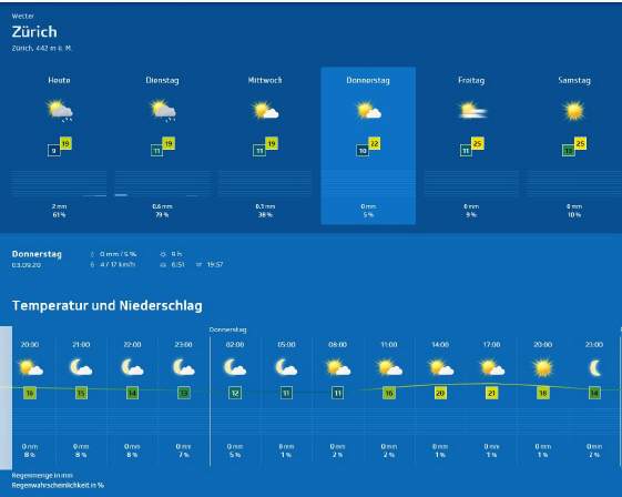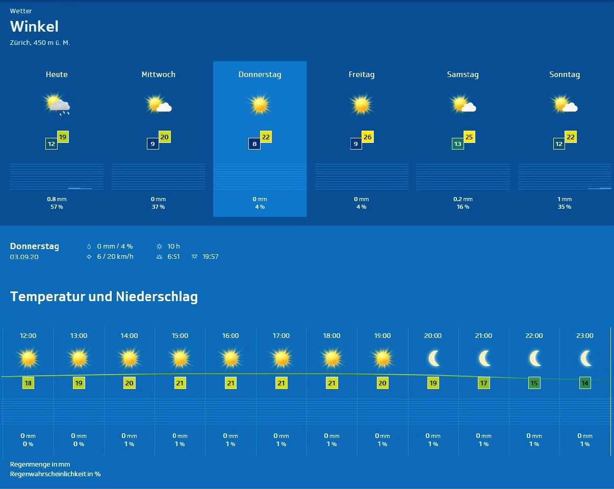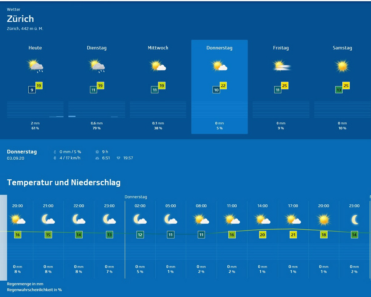 Züri-Wätter im Detail für Donnerstag, 3.Sept. 2020 |