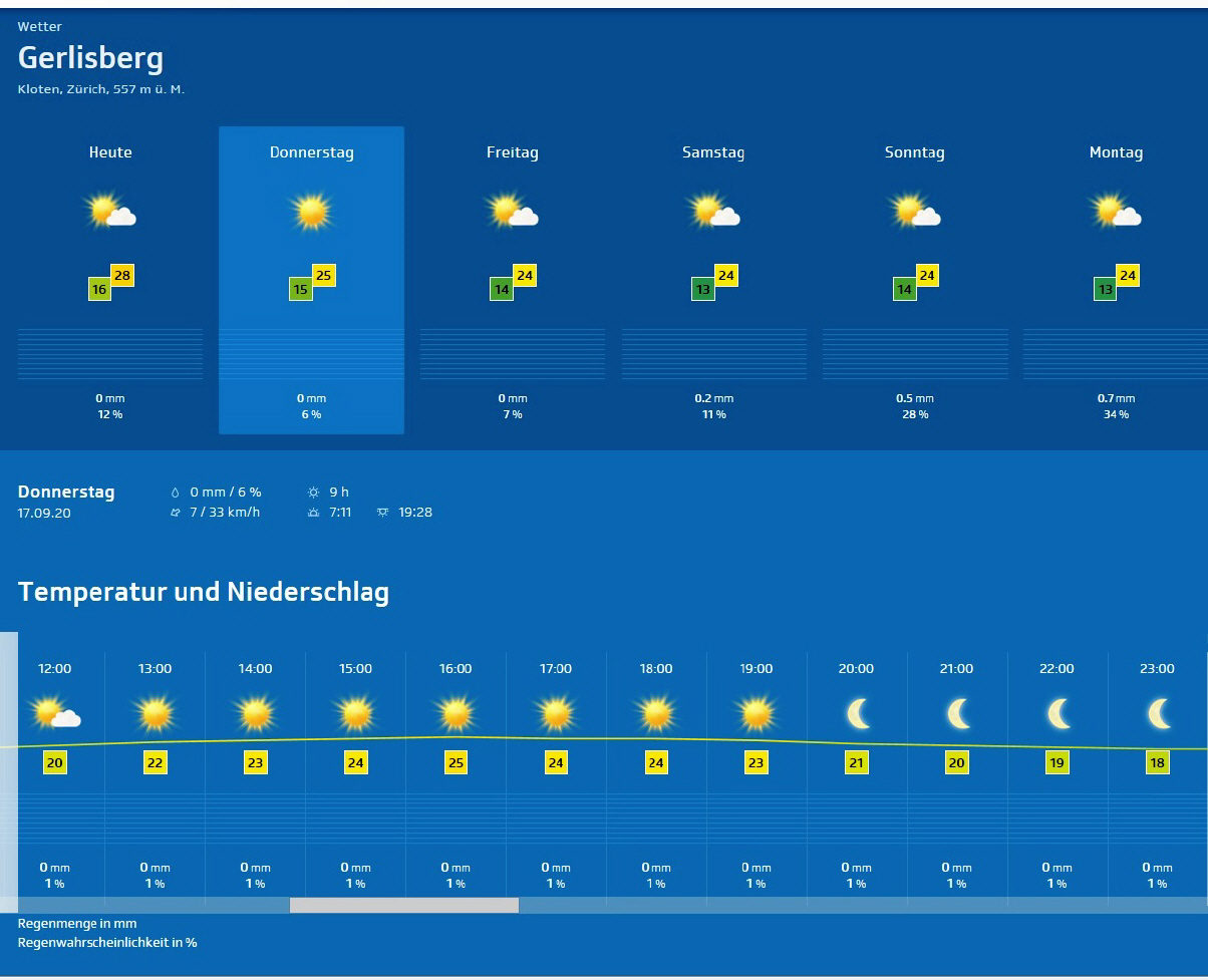 Züri-Wätter im Detail für Donnerstag, 17. Sept. 20 |
