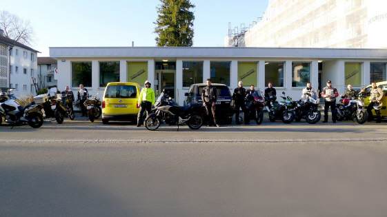Nun, bei ziemlich denselben Verhältnissen wie vor einer Woche (vielleicht noch eine Spur kälter), lade ich Euch zur zweiten Ausfahrt in diesem Jahr kurz vor 19.00 Uhr an der Tramstrasse 109 ein. Inzwischen ist es bei schönem Wetter fast bis um halb neun Uhr hell, bis dahin müssten wir wieder zurück sein. Wir werden wieder wie vor einer Woche an der COOP-Tankstelle in Kloten die Ausfahrt beenden. Dort hat es gut Platz und es gibt die Möglichkeit, im Shop etwas zu kaufen. |