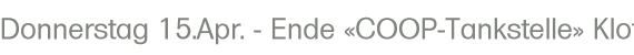 Über den Pfeil oben rechts «Weiter» zu «Donnerstag 8.April - Ende «COOP-Tankstelle» Kloten» |