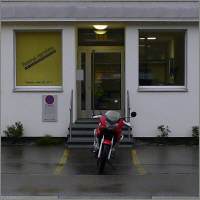 ... bei dem Sauwetter! Die Wetterprognosen standen seit Tagen schlecht. Nur die Zeiten (plus/minus 2 Stunden) und die Intensitäten haben sich geändert: Schliesslich war der Hauptteil etwas früher gekommen, und nicht so viel Regen wie ursprünglich angedacht. Aber bestimmt mehr als vor einer Woche ... So fuhr ich mit der Varadero zum Treffpunkt, wäre im Regen auch auf dieser ausgefahren, wenn jemand dagewesen wäre, so aber immerhin merkte ich, dass das Hauptlicht nicht ging (nur Schweinwerfer) und ich konnte sie anschliessend zum Mech hinstellen, der sie am nächsten Morgen flickte. Das hatte also auch was Positives!!!