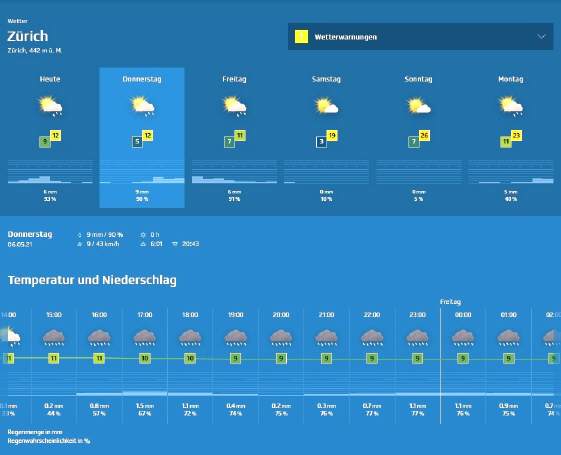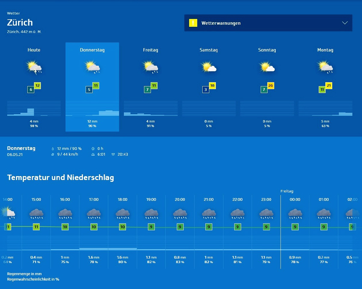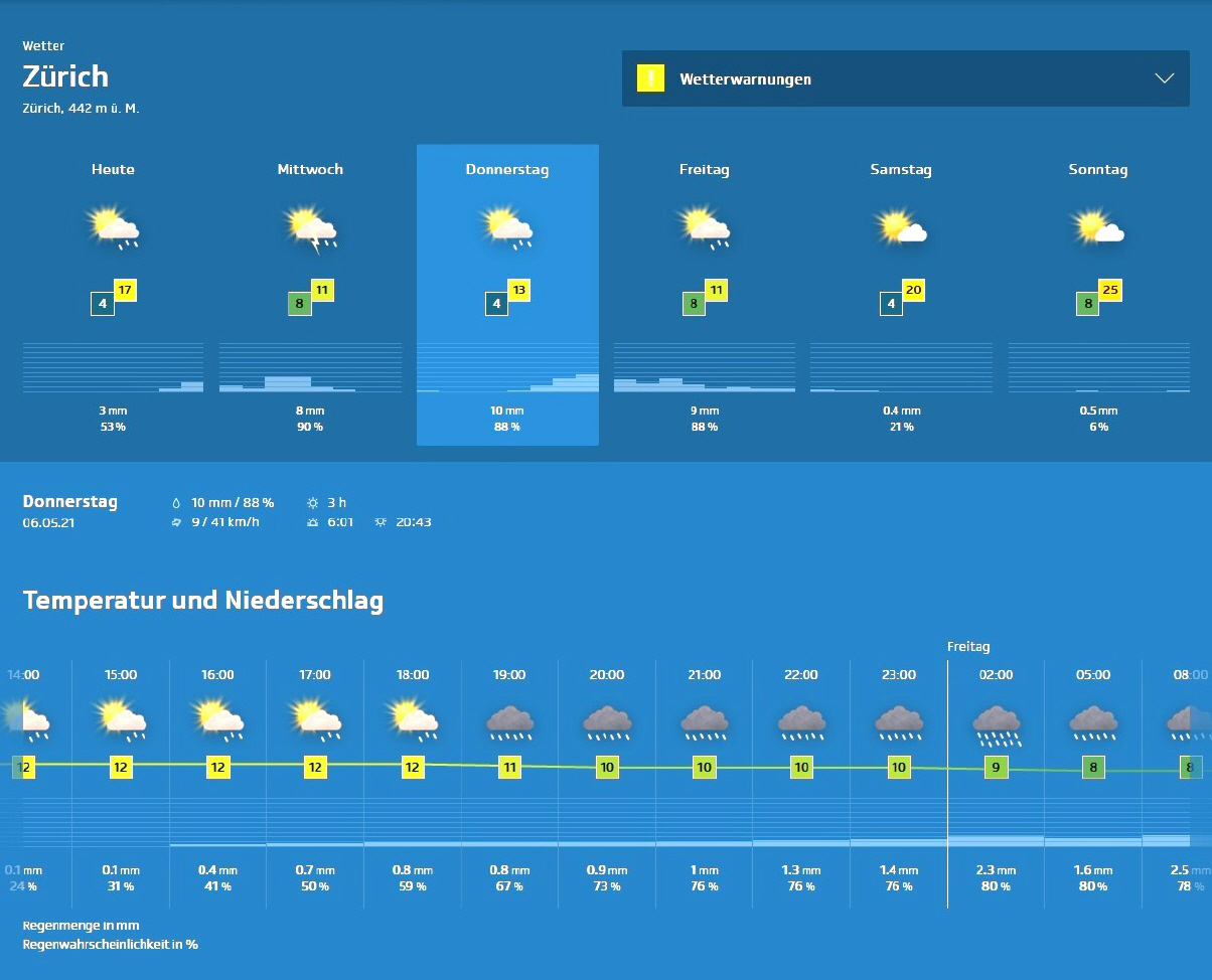 Züri-Wätter-Details für Donnerstag, 6.Mai 2021 |