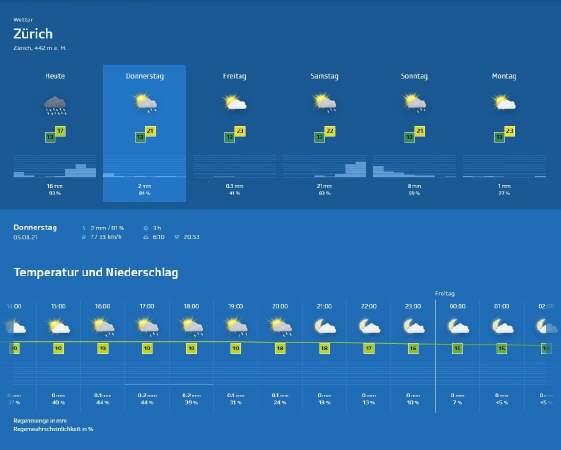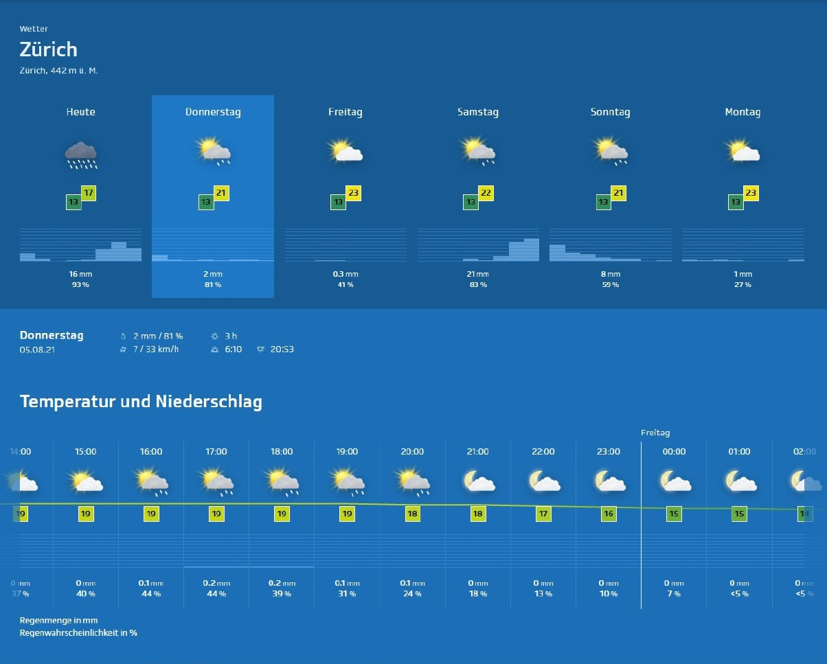 Züri-Wätter für Donnerstag, 5.Aug. 2021 |