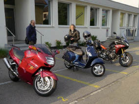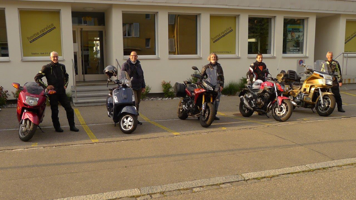 Roland und Alain erwarten die TeilnehmerInnen bei der Autobahn-Ausfahrt Thalwil auf dem Parkplatz zum Park im Grüene bei der Migros Rüschlikon. Sie werden um 18.00 Uhr losfahren und bestimmt eine interessante Strecke finden im Aargau. |