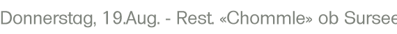 Noch ist es Ferien in der Stadt Zürich: Diese Chance wollen wir nutzen und nochmals in den Süden fahren. Diesmal ist es weniger heiss, aber bestimmt noch warm genug, auf der Terrasse das Abendessen einzunehmen. Das Restaurant Chommle liegt gleich hinter Beromünster, auf dem Weg dorthin fahren wir u.a. am Baldeggersee vorbei, auf dem Heimweg knapp südlich des Hallwilersees. Chommle ist attraktiv auf dem Hin- wie auch auf dem Rückweg, welcher etwa eine Stunde dauert. |