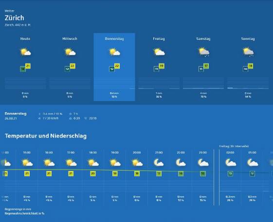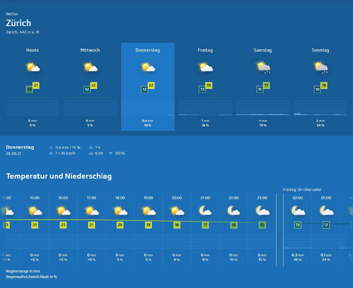 Züri-Wätter für Donnerstag, 26.Aug. 2021 |
