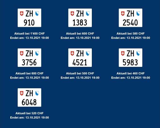Neue Platform der Auktion der ZH-Nummernschilder hier |