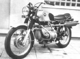 Die Modewelle, mit den hochgezogenen Auspüffen Mitte der 60er-Jahre in Amerika wurde von den Japanern bedient: Unter dem Namen Street Scrambler vermarktete Honda auf Basis der legendären CB450, einer Zweizylinder-Maschine, ab dem Jahr 65 das Modell CL 450 mit hochgezogenen Auspüffen, welche mit einer Hitzeblende versehen war. Auch Kawasaki hatte eine solche Maschine im Programm, die 250er A1 SS. Diese Modelle mit hochgezogenem Auspuff waren ursprünglich für das Gelände (Wasserdurchfahrten) gedacht. Im Sport sind sie schon in den 1950er-Jahren eingesetzt worden. 1980 hatte BMW anlässlich der internationalen Sechstage-Fahrt in Brioude/F ein Werksteam entsandt mit einer BMW-Geländemaschine, der BMW GS900 (GS für Geländesport) - einer Vorstufe der späteren R80 G/S, die Herbst 1980 in die Produktion ging. Rolf Witthöft wurde mit dieser Maschine Europameister. |