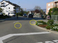 ... von Thalwil her kommend! Von meinem Zuhause sind es bis dort genau 2 km! «Wo passieren die meisten Unfälle?» frage ich jeweils meine Fahrschüler/innen. "Just around the corner!" oder in Deutsch: Gleich um die Ecke, richtig! Das ist auch der Grund, dass man nie auf die Schutzbekleidung verzichten sollte. Denn dort ist man am meisten gefährdet. |