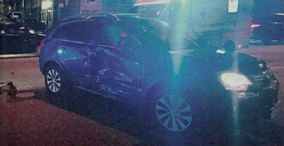 Der Vorderteil der Gold Wing Tour wurde eingestaucht (offenbar abgebrochen), der Airbag öffnete sich und hielt den Fahrer vom Direktanprall zurück. Im nächsten Bild die Schäden des Opel Antara, der ihm den Weg abgeschnitten hat. |