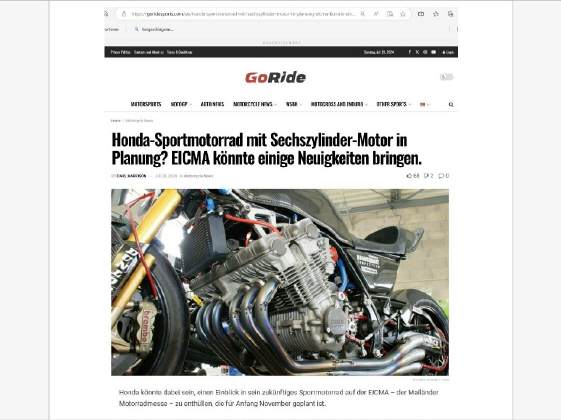 Wie Du im Bericht (klicke aufs obige Bild zum PDF) lesen kannst, soll an der kommenden EICMA Honda eine neue 6-Zylinder-Maschine vorstellen. 1977, nachdem Honda auf der Kölner IFMA 1974 mit der GoldWing, 4-Zylinder-Boxer-Motor, 1000 Kubik, Kardanwelle und Wasserkühlung den grossen Coup gelandet hatte, schoben sie die CBX-6-Zylinder nach, eine riesige Zylinderbank quer zur Fahrtrichtung eingebaut, als "Naked" und später mit Verschalung. BMW dazu in der Werbung: Wir bauen auch Sechszylinder-Motoren, aber die Fahren in einem Auto! Doch auch BMW kam mit einer 6-Zylinder, ähnlich der Honda, heraus, aber es dauerte noch etwa 35 Jahre!