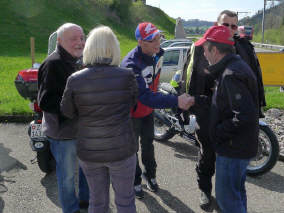 Auf dem Rückweg von Bauma besuchte ich meine Eltern, um die neuste Errungenschaft zu zeigen! Im Bild v.l.n.r. Bruder Daniel, Bruder Christoph und Vater Robert