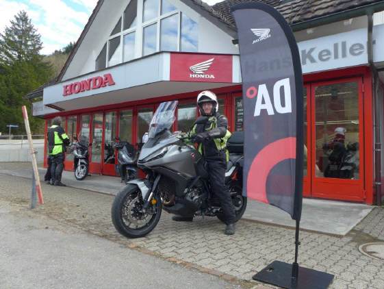 In den Unterlagen von Honda wird das Gewicht des DCT-Modells mit 248 Kilogramm vollgetankt (inkl. 20 Liter Benzin) angegeben, ohne DCT ist sie 10 Kilos leichter. Aus dem Testbericht von 1000PS konnte ich entnehmen, dass die Koffer je Seite mit 6 Kilos Extragewicht zuschlagen, das Topcase, welches in der Vollausstattung montiert war, wird wahrscheinlich weitere 8-10 Kilos wiegen. Vom Gewicht konnte ich überhaupt nichts merken, weder im Fahr- noch im Schiebebetrieb: Ich errichte leicht den Boden und, im Gegensatz zur früheren grossen Varadero, fühlte sie sich total leicht an. Einlenken auch in engste Kurven, wie sie auf dem Weg nach Sternenberg vorkommen, ist weder mit Arbeit noch mit Nachdruck verbunden, sie fährt einfach – vom Gewicht spürt man überhaupt nichts. Das war für mich eine Offenbarung: Dies ist bestimmt der Gewichtsverteilung des Zweizylindermotors zu verdanken, der zusammen mit den kleineren 17 Zoll-(Strassen-)Rädern in wenig spektakulären Grössen (vorne 120, hinten 180 Millimeter breit) eine hervorragende Balance ergibt. Die Bremsen sind zupackend, aber kaum aggressiv. Die Schräglagenfreiheit ist im 1-Personen-Betrieb ohne Tadel, drei Mal streifte ich in nach aussen abfallenden Rechtskurven, in Linkskurven kam ich nie ans Limit. Dank den warmen Temperaturen hatte ich volles Vertrauen in den Reifengrip und wurde nicht enttäuscht.