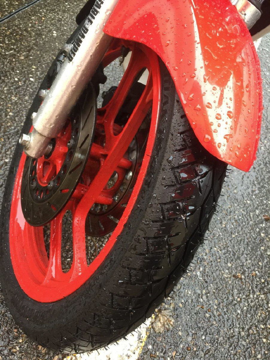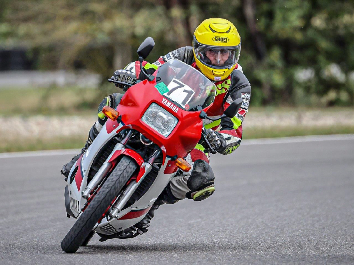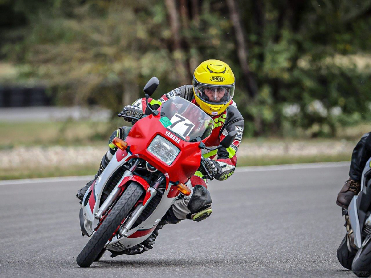 Ich nahm meine Yamaha RD 350 mit, die ich extra noch mit neuen rennstrecken-tauglichen Reifen ausgerüstet hatte, um auf der Piste erste Erfahrungen zu sammeln. Damit konnte ich schliesslich raus trotz Regen, wenn auch mit stark reduziertem Tempo. Nach dem Mittag ging es dann so richtig los und ich sparte mir den letzten Turn auf, um die RD jetzt auf trockenem Untergrund, aber mit neuen Reifen zu fahren. Es durfte nichts passieren, da ich ja die Maschine umbauen lassen will, um die Originalteile zu schonen. Von der Kraftentfaltung war ich (verglichen mit meiner 600er-4-Zylinder-Honda) etwas enttäuscht, ich hatte mir «das geile Eisen» etwas bissiger vorgestellt. Die Maschine drehte nur bis zu einem Punkt, dann war Feierabend und nur der nächste Gang machte einem schneller. Mal schauen, ob da sich noch etwas machen lässt. Ich bin ja auch nicht wirklich viel gefahren in diesem Jahr.