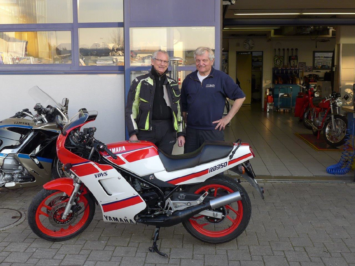 Seit dem Herbst 2012 stand «meine» Yamaha RD 350, die ich von einem Nachbar käuflich erworben hatte, bei Hans Küng vom Zweirad-Sporthaus Küng in Nänikon-Greifensee eingestellt und wartete darauf, aus dem Dornröschenschlaf erweckt zu werden.