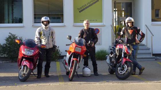 Mit einer Zweitakt-Maschine ist es schwierig, in einer Gruppe mitzufahren: Niemand will hinter dem «Rauchvelo» fahren, so musste ich eine Ausfahrt abwarten, bei welcher ich als Schlussfahrer gehen konnte. Dies war am 11.August gegeben, als wir nur zu dritt unterwegs waren: Renato übernahm die Rolle als Tourguide, ich als Schlussfahrer. So wurde niemand belästigt und ich konnte die erste richtige Ausfahrt geniessen. Irritiert war ich nur, weil die Tachosaite auf der Fahrt ins Geschäft sich selbständig gemacht hatte (gemerkt am Tacho), aber dass ich sie ganz verlieren würde, hatte ich so nicht erwartet, sonst hätte ich sofort angehalten: Man lernt immer dazu!