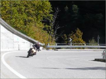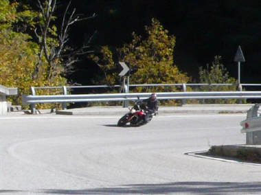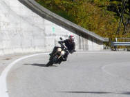 Das ganz grosse Plus gegenüber der Honda ist der Durchzug des Dreiers unten raus - und DER TON: Ich habe mich erwischt, wie ich im Tunnel 2 Gänge runtergschaltet habe, nur um dem schönen Ton zu lauschen. Das hat der Gegenverkehr bestimmt nicht verstanden, denn es war das Gebrüll eines brünstigen Hirsches. Aber in Italien fällt das wohl kaum auf, da fahren ja lauter grosse Jungs ihre brüllenden Spielzeuge spazieren. |