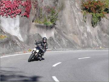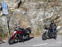 Die «neue» Hornet sieht ja auch nicht schlecht aus fürs Auge: Nur, das Charisma einer Speed oder Street Tripple kann sie natürlich nicht vermitteln. Dafür lässt sie sich spielend bedienen: Alles geht ganz leicht von der Hand, die Handkräfte an den Hebeln, die sanfte Gasannahme, die mustergültige ABS-Brems- anlage. So tauscht Sigrid denn auch, immer wenn es schwierige Strassenverhältnisse werden, freiwillig von der Triumph auf die Honda. |