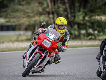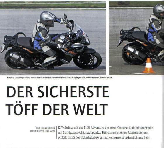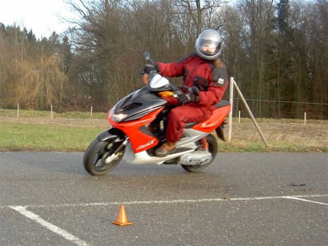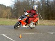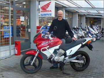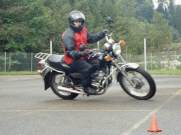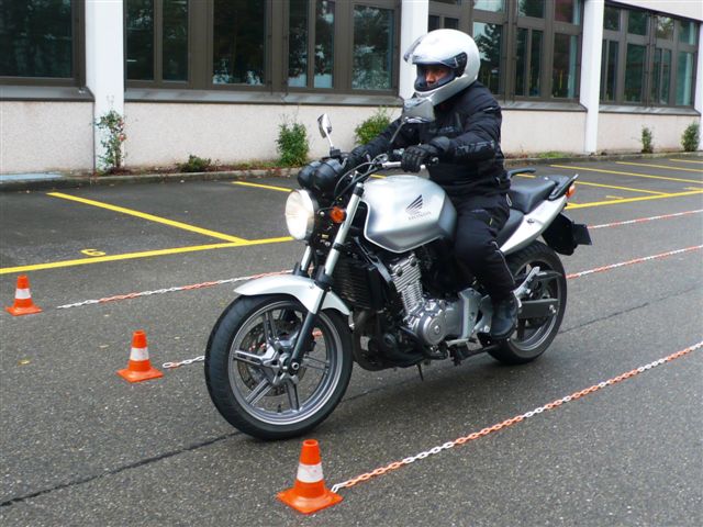 Nach der abgeschlossenen Grundschulung ist dann das nötige Fahrkönnen zusammen, um bei einer Probefahrt zu beurteilen, ob eine Maschine passt oder nicht: Während zu Beginn der Ausbildung unbedingt der Boden mit beiden Füssen flach erreicht werden sollte, kann nach der Bewältigung und Überwindung der ersten Probleme eine Maschine dienen, bei der man noch mit einem Fuss (dem linken!) den Boden flach erreichen kann. |