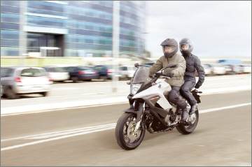 Der Kontakt eines grossen Töffs zur Strassenoberfläche entspricht pro Reifen der Handfläche einer erwachsenen Person, bei einem Roller die eines Kindes: Über diese beiden Handteller-grossen Aufstandsflächen müssen alle Kräfte übertragen werden.