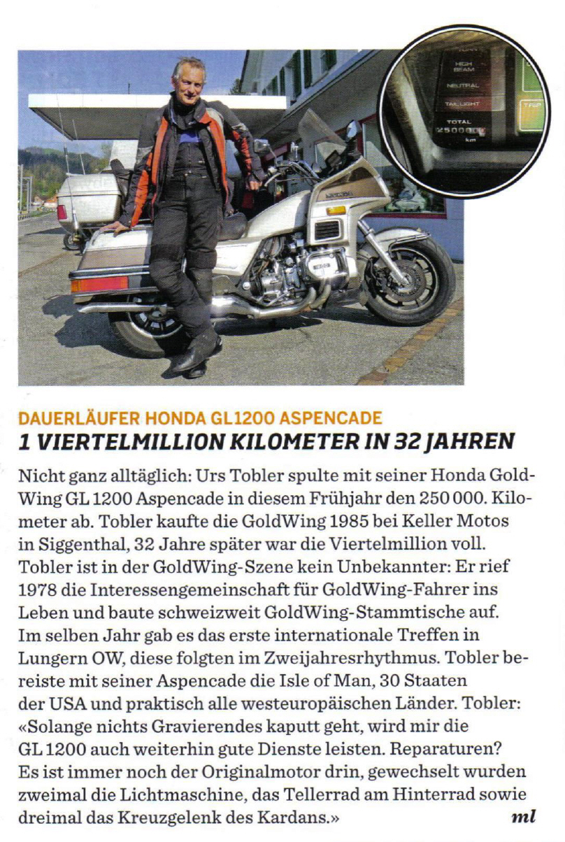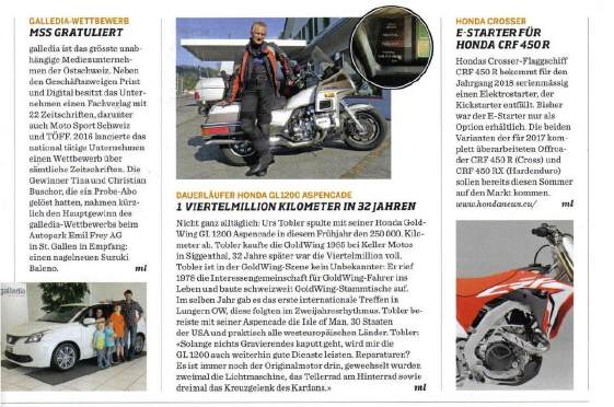 Im MotoSportSchweiz vom 11.Juni kam unter dem Titel "1 Viertelmillion Kilometer in 32 Jahren" folgender Artikel (zur Vergrösserung an«klick»en!)