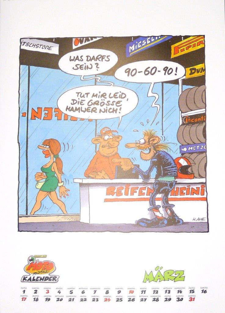 Wer einen «motomania»-Kalender 2018 haben möchte, kann ihn per Mail an urs.tobler (at) datacomm.ch oder unter Tel. 044 313 13 33 bestellenen. Er kann dann an der Tramstrasse nach telefonischer Voranmeldung abgeholt werden. Die einzelnen Monatsblätter kannst Du vergrössert ansehen, wenn Du auf das Bild «klickst»!