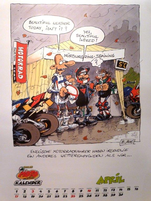 Wer einen «motomania»-Kalender 2015 haben möchte, kann ihn per Mail an urs.tobler (at) datacomm.ch oder unter Tel. 044 313 13 33 bestellenen. Er kann dann an der Tramstrasse nach telefonischer Voranmeldung abgeholt werden. Die einzelnen Monatsblätter kannst Du vergrössert ansehen, wenn Du auf das Bild «klickst»!