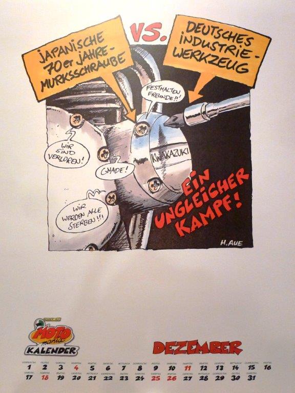Wer einen «motomania»-Kalender 2018 haben möchte, kann ihn per Mail an urs.tobler (at) datacomm.ch oder unter Tel. 044 313 13 33 bestellenen. Er kann dann an der Tramstrasse nach telefonischer Voranmeldung abgeholt werden. Die einzelnen Monatsblätter kannst Du vergrössert ansehen, wenn Du auf das Bild «klickst»!