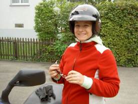 Falsche Angst begleitet Töff- und Rollerfahrer, wenn sie beginnen: Ist es Angst (ehrlich gesagt) oder Respekt (feineres Wort für versteckte Angst) am falschen Ort, so ist nicht das Manöver allein das Problem, sondern die zögerliche Ausführung! Die «Bilderstrecke» des «Jumps over the edge of the Trottoir» (Sprung über die Trottoirkante) macht dies deutlich: Ich würde mal sagen, der Sprung war unabsichtlich, eher auf die Tatsache auf das mangelnde Gefühl mit dem Gas umzugehen zurückzuführen, aber er zeigt deutlich: Zackig ausgeführt ist das Manöver völlig ungefährlich, solange man mit dem Rad in Geradeausfahrt landet! Deshalb gilt, im Gegensatz zum Erklettern des Trottoirs, wo man im rechten Winkel ansetzen sollte, die zügige Fahrt stabilisiert das Fahrzeug - egal in welchem Winkel - zögern ist hier fehl am Platz! Link zur Bildstrecke