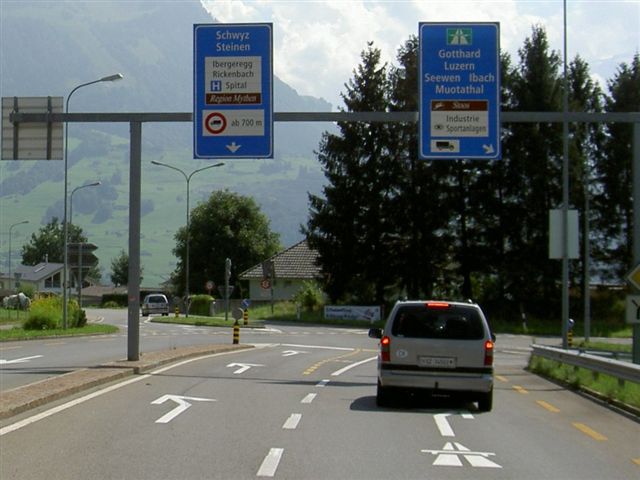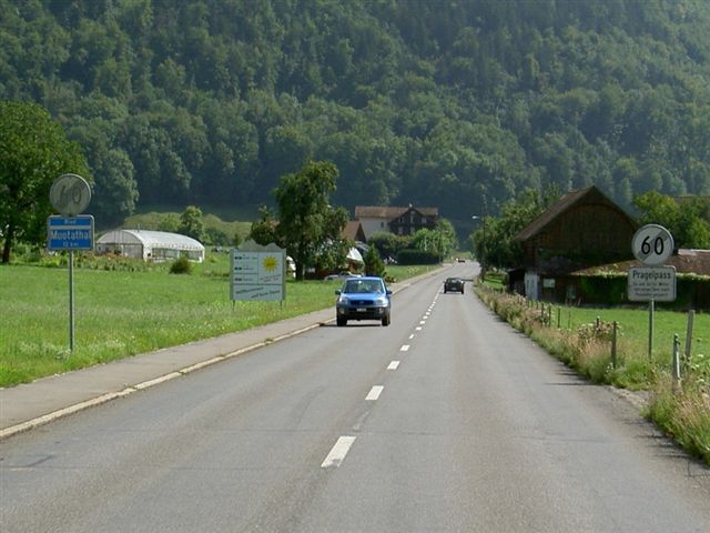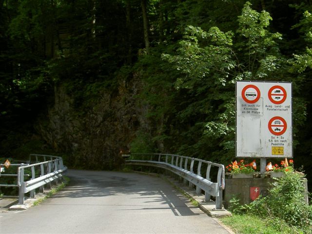 Bereits ausgangs Schwyz wird angezeigt, dass der Pragelpass am Samstag und Sonntag für Motorfahrzeuge gesperrt ist: Dazu gehören nicht die Velofahrer und auch nicht die Fussgänger! (Definition siehe einleitendes Bild) Also nicht verwirren lassen und getrost weiterfahren in Richtung «Pragelpass»...