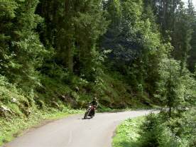 Ein einspuriges Motorrad gestossen bei abgestelltem Motorrad gilt nicht als Fahrzeug: Wer mit seinem Motorrad so spaziert, ist ein Fussgänger! Da die Strasse auf den ersten 200 Metern ebenaus geht und dann weitere 700 Meter alles bergab bis nach Richisau, ist's tatsächlich «nur ein Spaziergang»...