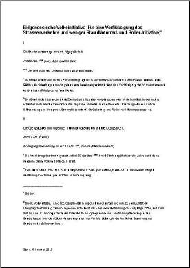 Eidgenössische Volksinitiative 'Für eine Verflüssigung des Strassenverkehrs und weniger Stau (Motorrad- und Roller-Initiative)'