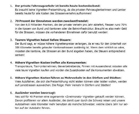 Argumentarium gegen die 100-Franken-Autobahn-Vignette, als PDF [123 KB]