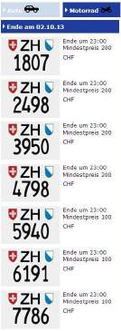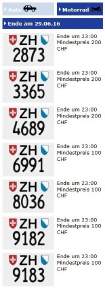 Link zu den vergangenen Auktionen 3-stelliger ZH-Töffschilder |