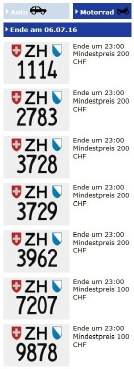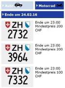 Während der Hochsaison wurden jede Woche sechs 4-stellige Töff-Nummernschilder versteigert: In dieser Woche liegt der Einstieg bei drei der sieben Nummern bei nur 100 Franken! Heute zum letzten Mal! |