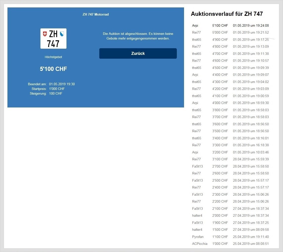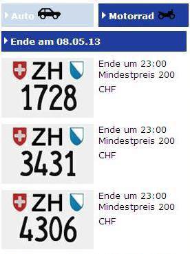 Jede zweite Auktion mit 3stelligem ZH-Töff-Schild! |