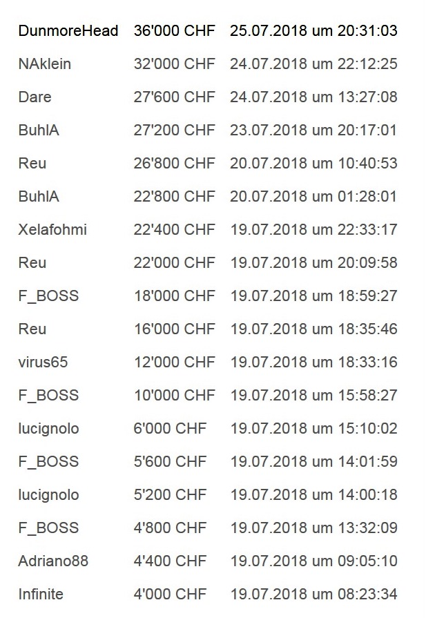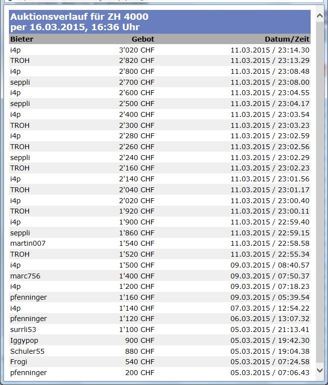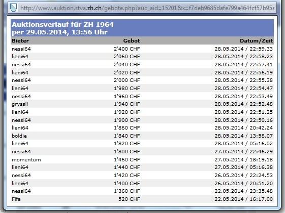 Schau ins Versteigerungsprotokoll: Ab 40'000 gab es nur noch 2 Bieter, die sich gegenseitig hochboten ... Klicke aufs Bild zur Vergrösserung!