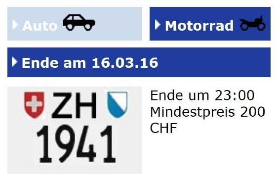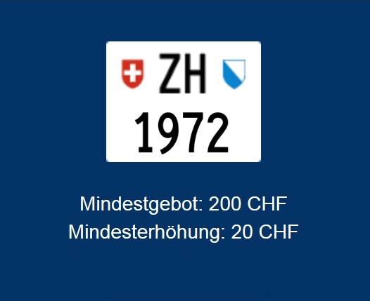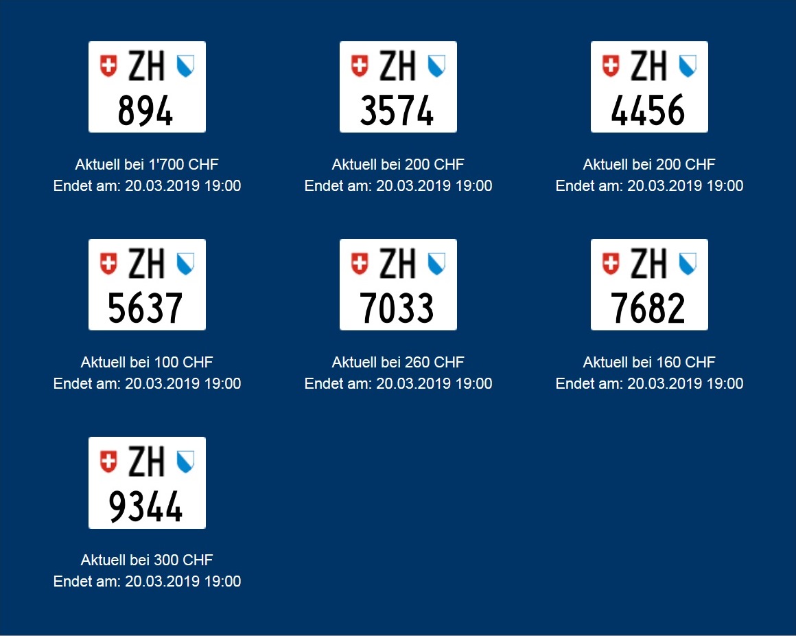 Ab dem 11.März 2020 gibt es wieder regelmässig 7 ZH-Schilder in der Auktion, alle 2 Wochen ein 3-stelliges! Aktuelle Auktion klicke hier