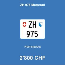 Am 17.4.2019 wurde im Kanton Zürich das dritte 3-stellige TÖFF-Nummernschild ausgegeben - in der Auktion dem Höchstbietenden: Verfolge den Verlauf «ZH 975» bei diesem Schild, welches immerhin einen Erlös von Fr. 2'800.- erzielte -, heute erzielen 3-stellige Autonummern jeweils um die 20'000 Franken - mehr dazu hier