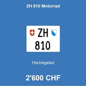 Am 7.8.2019 wurde im Kanton Zürich das elfte 3-stellige TÖFF-Nummernschild ausgegeben - in der Auktion dem Höchstbietenden: Verfolge den Verlauf «ZH 810