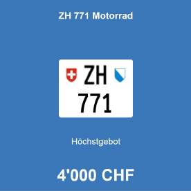 Am 21.8.2019 wurde im Kanton Zürich das zwölfte 3-stellige TÖFF-Nummernschild ausgegeben - in der Auktion dem Höchstbietenden: Verfolge den Verlauf «ZH 771