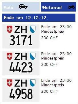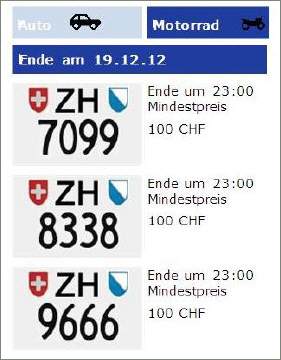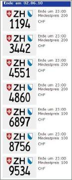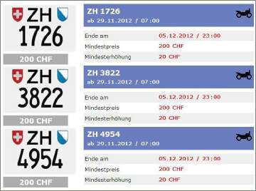 In der Hochsaison werden jede Woche sieben 4stellige Töff-Nummernschilder versteigert, seit dem 20.März 2019 jede zweite Woche gar ein 3-stelliges Töff-ZH-Schild: Da der Bedarf regelmässig hoch ist, gibt es im Sommer kaum «Schnäppchenpreise»! |