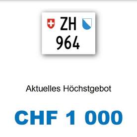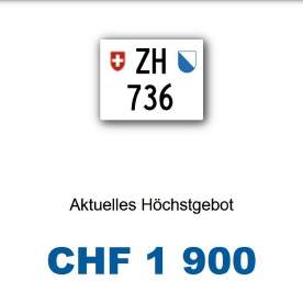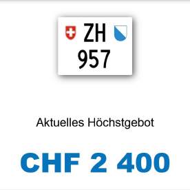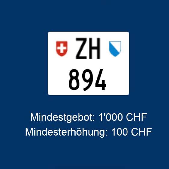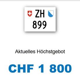 Am 10.7.2019 wurde im Kanton Zürich das neunte 3-stellige TÖFF-Nummernschild ausgegeben - in der Auktion dem Höchstbietenden: Verfolge den Verlauf «ZH 897