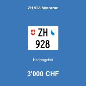 Am 27.11.2019 wurde im Kanton Zürich das 3-stellige TÖFF-Nummernschild ausgegeben - in der Auktion ging es für nur Fr. 3000.- weg: Ein Schnäppchenpreis! Verfolge den Verlauf vom «ZH 928