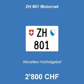 Am 22.1.2020 wurde im Kanton Zürich das 3-stellige TÖFF-Nummernschild ausgegeben - in der Auktion ging es für nur Fr. 2800.- weg: Ein Schnäppchenpreis! Verfolge den Verlauf vom «ZH 801