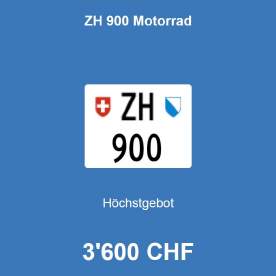 Am 19.2.2020 wurde im Kanton Zürich das 3-stellige TÖFF-Nummernschild ausgegeben - in der Auktion ging es für nur Fr. 3600.- weg: Ein Schnäppchenpreis! Verfolge den Verlauf vom «ZH 900
