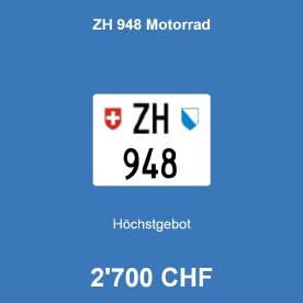 Am 04.03.2020 wurde im Kanton Zürich das 3-stellige TÖFF-Nummernschild ausgegeben - in der Auktion ging es für nur Fr. 2700.- weg: Ein Schnäppchenpreis! Verfolge den Verlauf vom «ZH 948