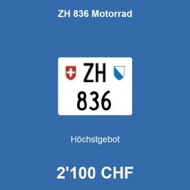 Am 18.03.2020 wurde im Kanton Zürich das 3-stellige TÖFF-Nummernschild ausgegeben - in der Auktion ging es für unglaubliche Fr. 2100.- weg: Ein absoluter Schnäppchenpreis! Verfolge den Verlauf vom «ZH 836
