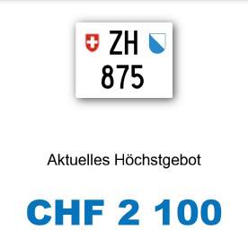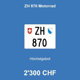 Am 1.04.2020 wurde im Kanton Zürich das 3-stellige TÖFF-Nummernschild ausgegeben - in der Auktion ging es für nur Fr. 2300.- weg: Ein absoluter Schnäppchenpreis! Verfolge den Verlauf vom «ZH 870